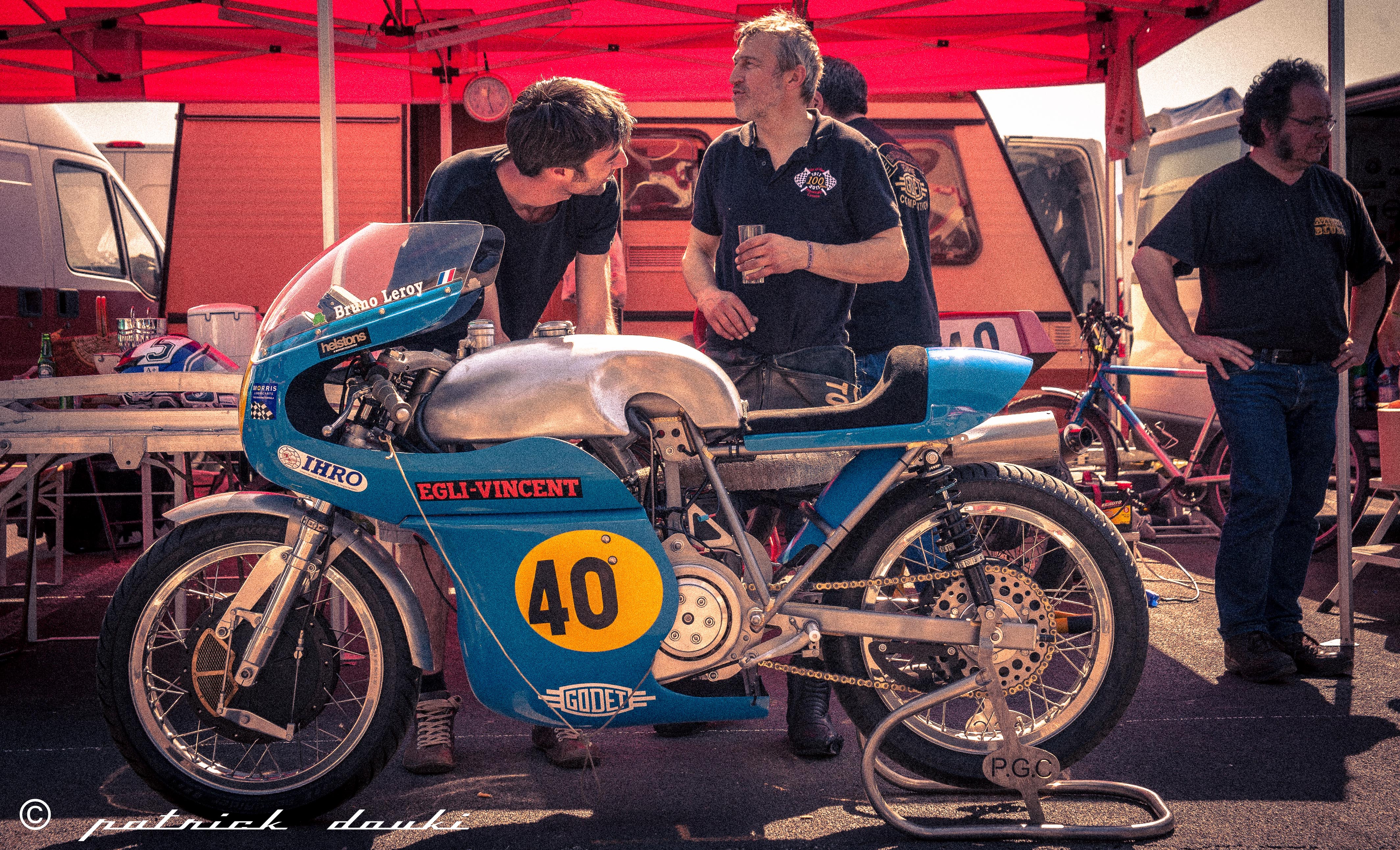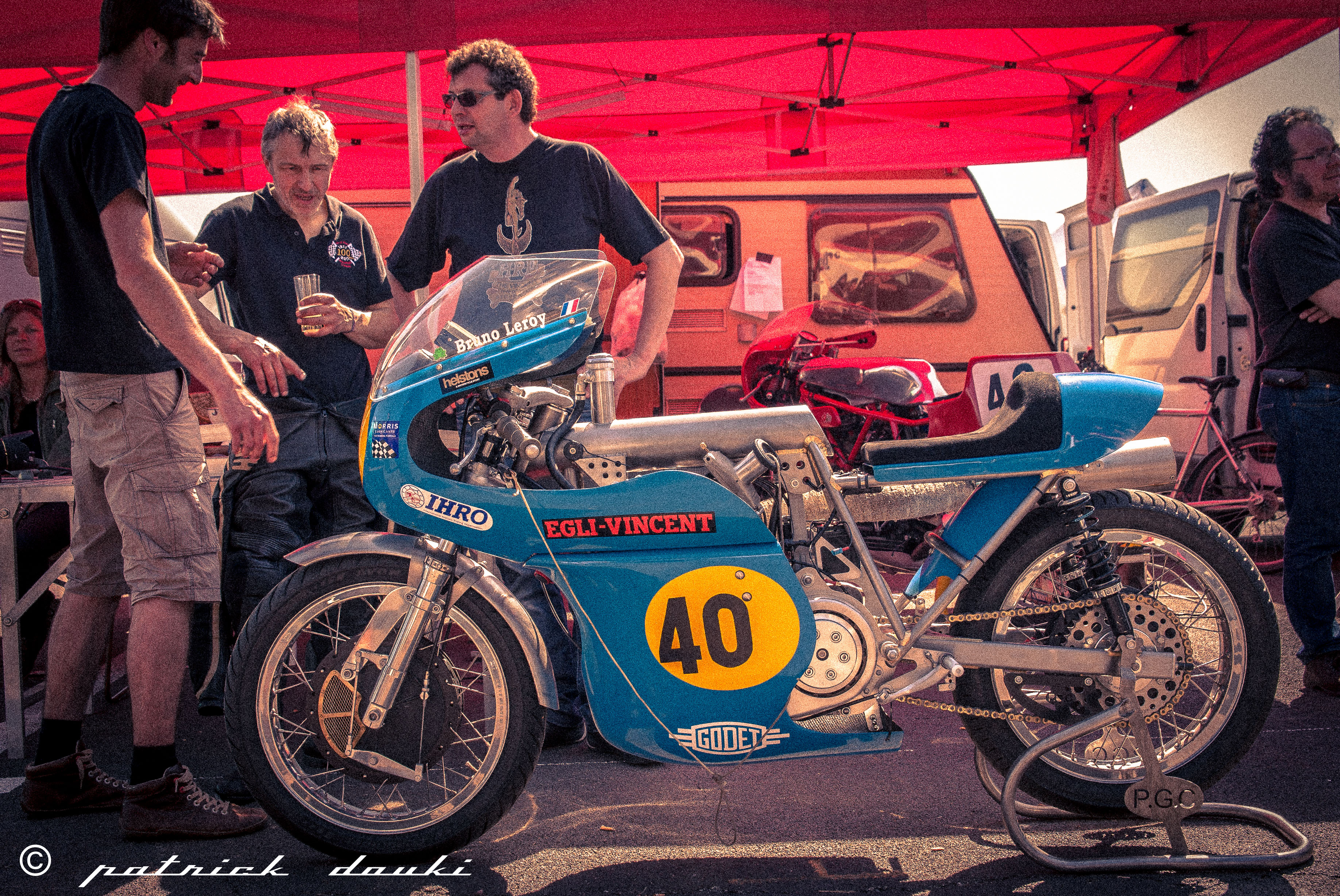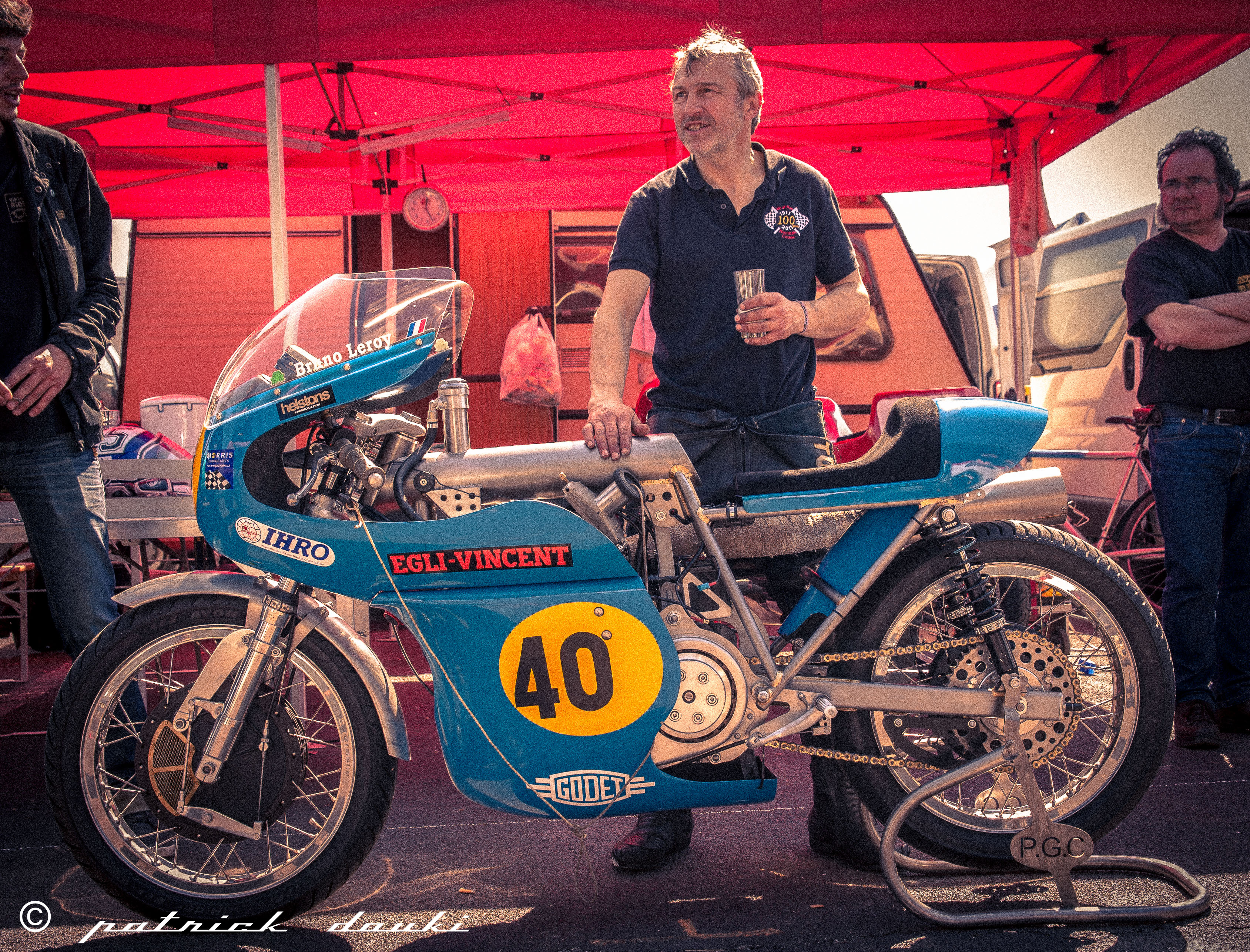 First victory of the season for Bruno Leroy’s Egli-Vincent and the Team Godet Competition in the second race. In the first race, Bruno fought for the 1st place, when the bike handling started deteriorated due to 3 broken spokes, he however finished second. The bike is very fast but is still under development, it is however great to see that at that stage it is ahead of some Manx.