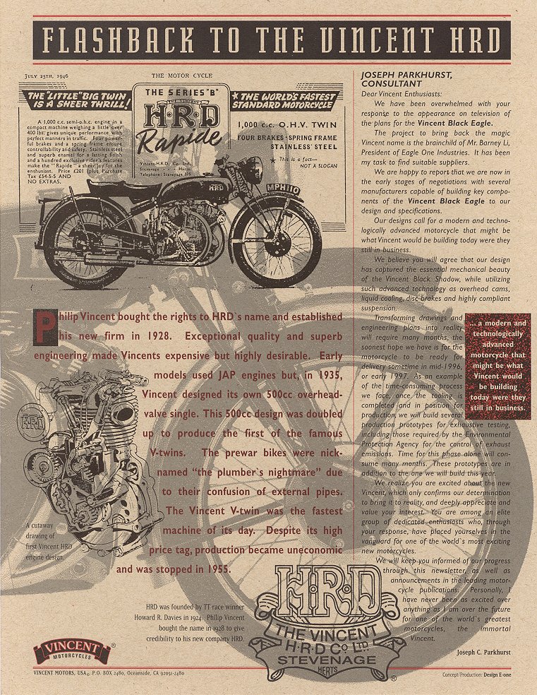 Mar 30, 1995... Bernard Li announce in this first flyer that he started his quest to make the Vincent V-Twin back to life.