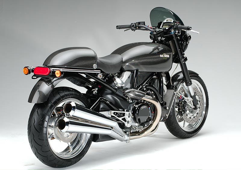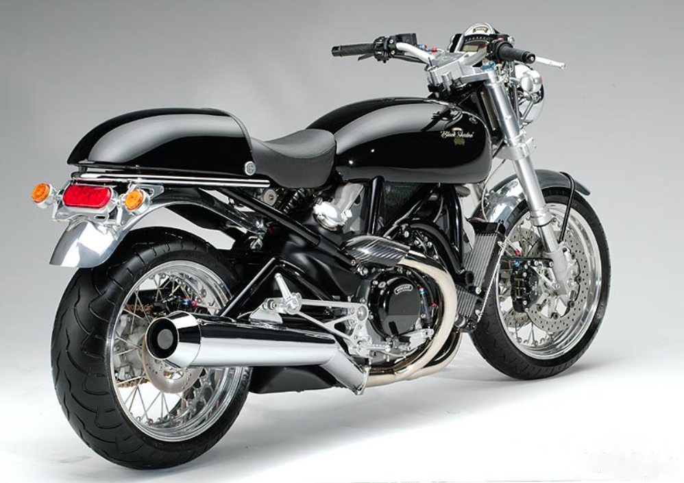Four prototypes were designed, engineered and assembled by Roush Industries in Detroit and presented in 2002: The “Black Shadow” as the standard model, the “Black Lightning S” as the sport model, the “Black Lightning ST” as the touring model and the “Black Eagle”, which is the cruiser version. All these bikes had the same architecture and common engine. Equipment and accessories were selected from tiers one suppliers such inverted forks, Brembo forged calipers, forged billet tubeless wheels, carbon fiber bodywork and craftsmanship style work.