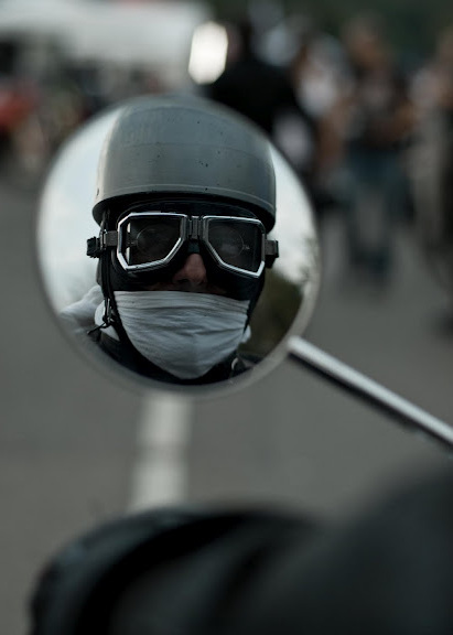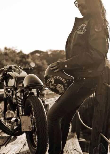 Definitely very feminine, a few touches of red, included the lipstick almost coordinated with her Triumph SpeedTwin and this unknown rider became "The Lady in Red".