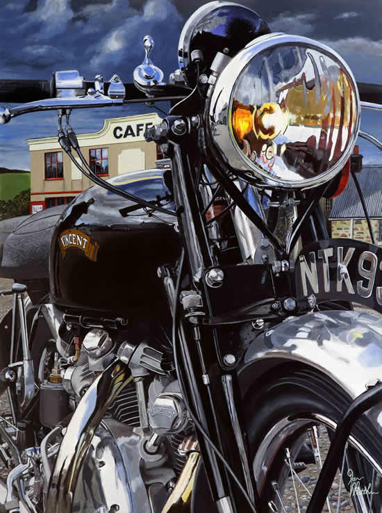 Being one of the most desirable motorbike, it is no surprise that the Vincent have inspired many artists and most of these artwork were in fact sponsored by Vincent enthusiasts themselves. There is nearly 100 pictures available on the “Art about Vincent” folder on our Facebook page, here is some of my preferred one.