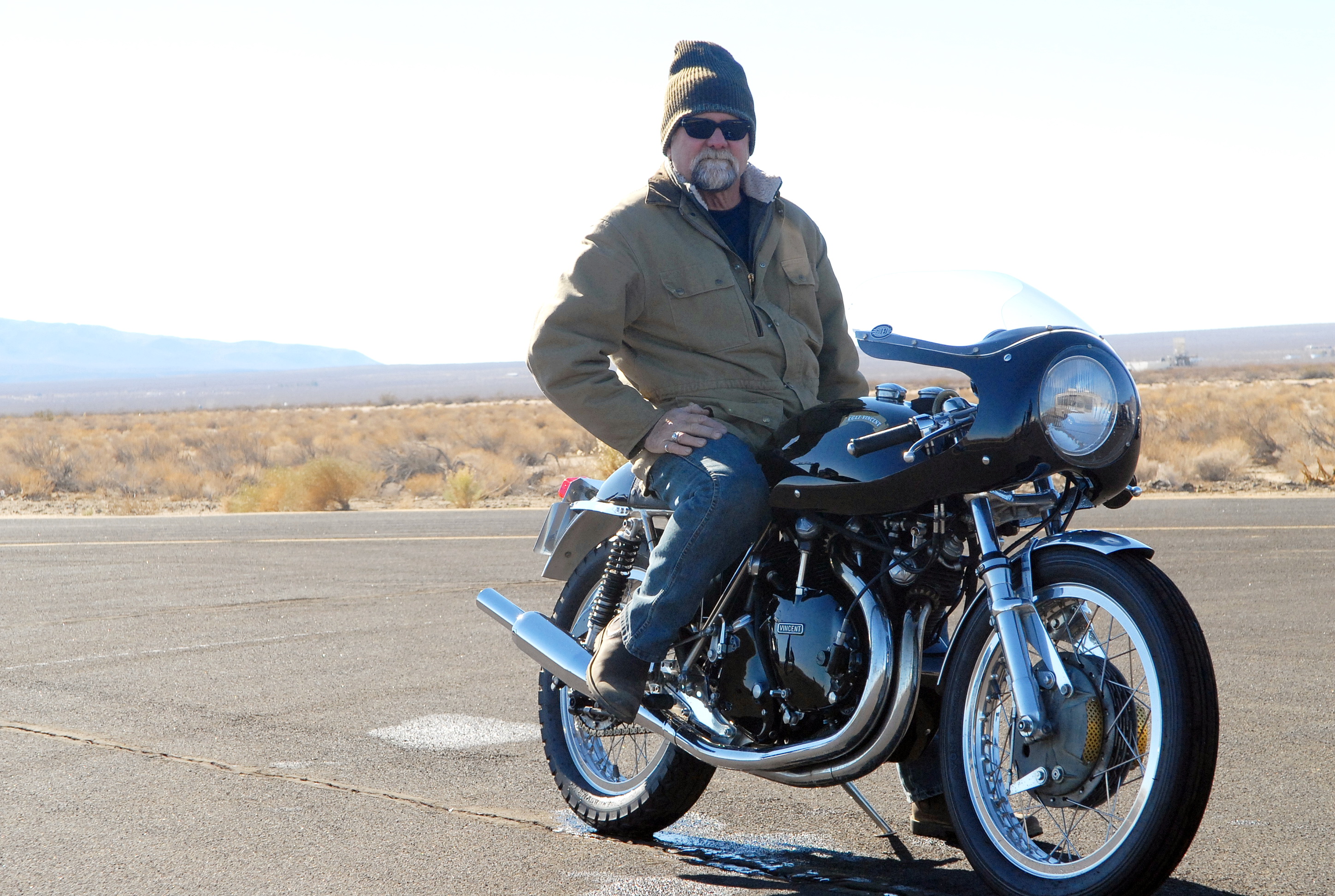Mars Webster bought his Egli-Vincent in 2001 and it was delivered from France to California in 2002. As I inquired “why is it still registered in France?”. Mars answered “the French plate is part of my bike, when I ride it, I snap my Californian plate on my jacket; so far the Police has been rather lenient with me for this whimsy ☺”