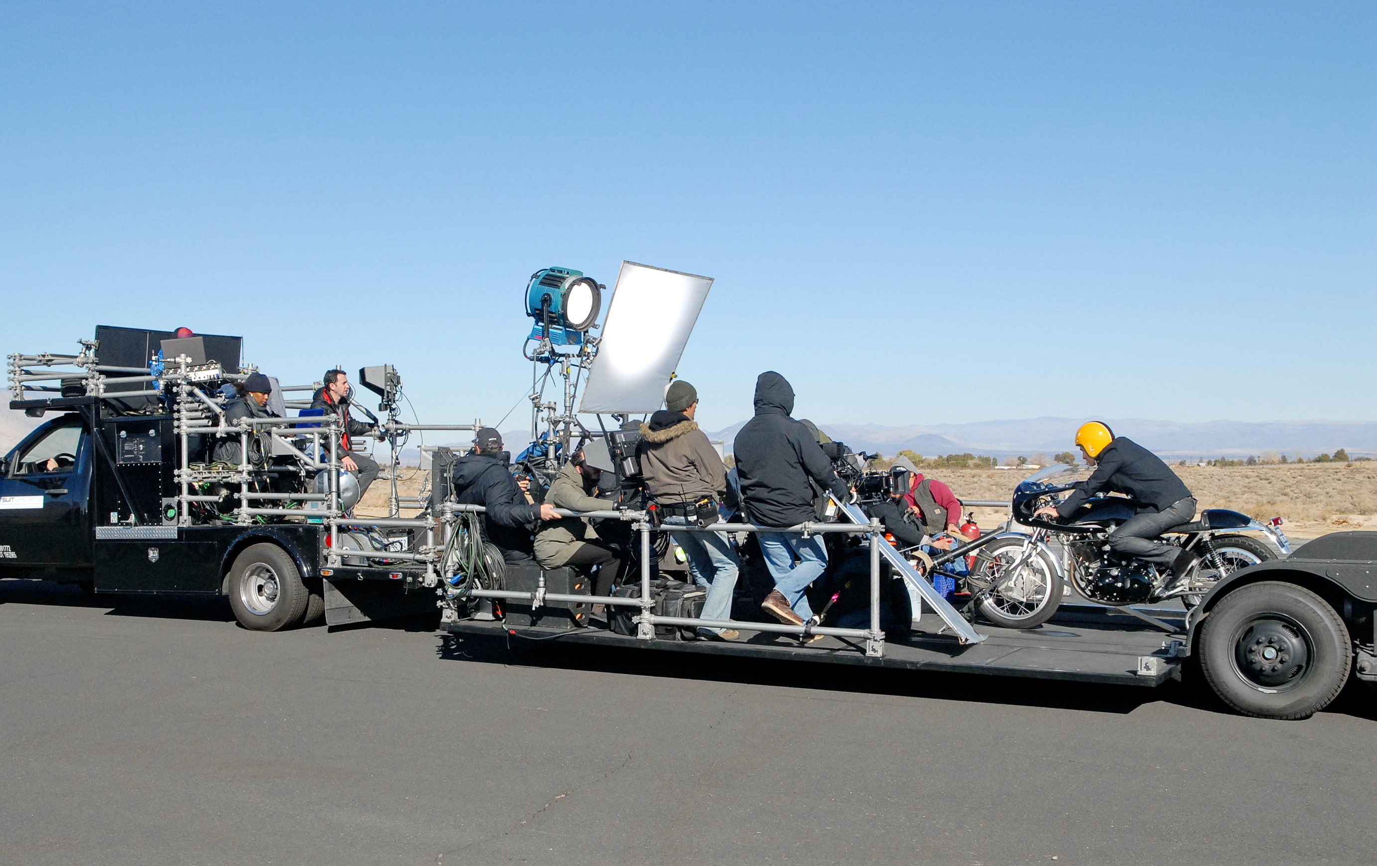 Mars pushed the bike back to his truck in order to diagnose the issue. “Soon a large crowd was surrounding me and the bike and I can tell that I never felt so much pressure in my life” said Mars. Fortunately, the production had hired the assistance of a mechanic, John Landon (6), and after forty long minutes the problem was fixed. “Although the problem was minor, I am grateful John arrived on location with perfect timing as his support helped to greatly relieve my stress” said Mars. Julien the producer, who was standing a few dozen yards away from Mars, looked at him in the eyes with the thumb up, expecting in return either the sign of “victory or death”. But next in the picture was Vladimir the stunt rider who was also an experienced and great rider, so Mars was confident to return a thumb up.