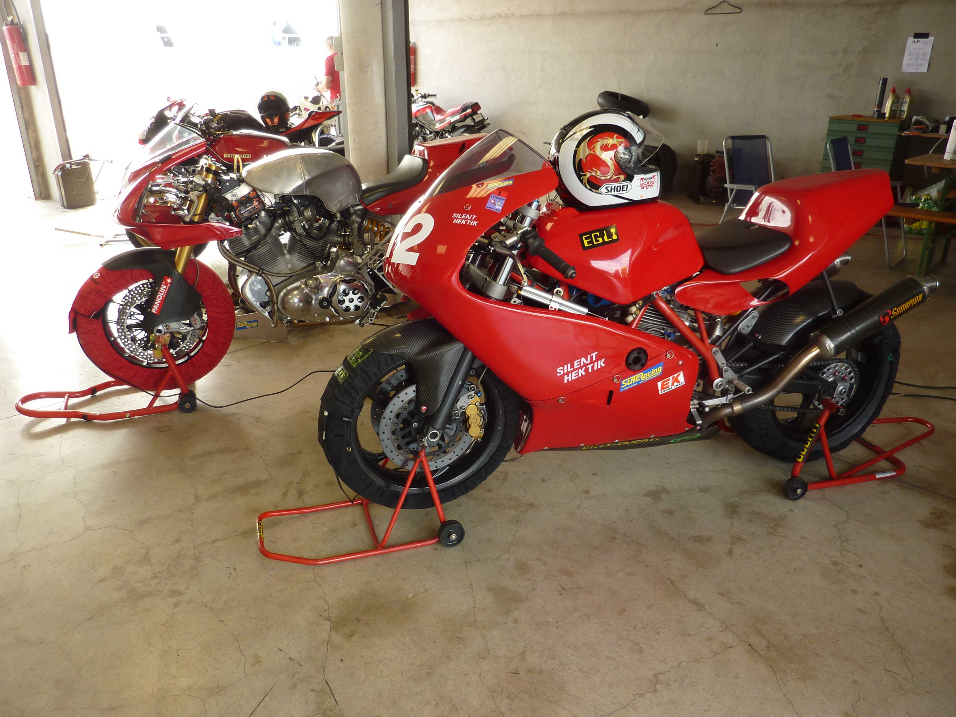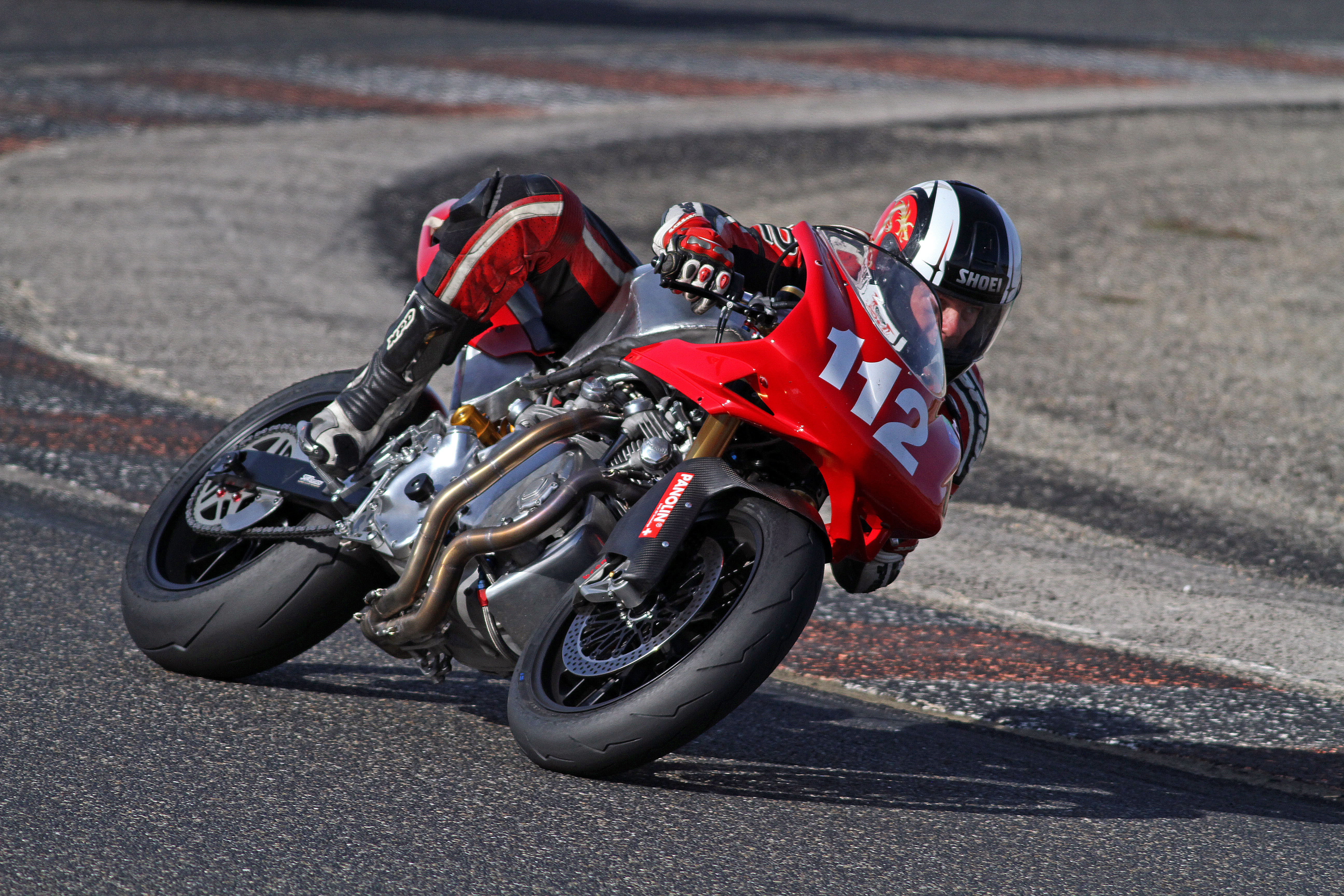 The first Roll-Out of the TPV-EGLI-Vincent was a great event. After two hours runtime without any technical problems, one can say that it passed successfully. The chassis is very agile, stable and accurate and was advantageous for passing slower riders “off the line”. Also, the striking bump in the apex of the “bridge curve” has been absorbed without problems. The TPV-EGLI-Vincent has the potential, no doubt, to cope with a tuned racing engine, and thus the current superbikes to teach the fear.