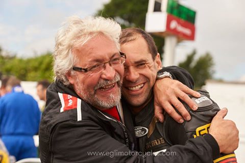 Emotional moment after Horst Saiger got his 10th position the the Classic Senior class ended., here with Juerg (left) Chief Mechanic of the Egli Racing Team