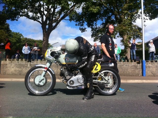 Horst Saiger ready to take off. He will finish in 10th position averaging over 102mph on the four lap. Not only it confirms the improvement made on the Egli this winter but it makes the Vincent best lap ever on the TT. Photo © David Lancaster