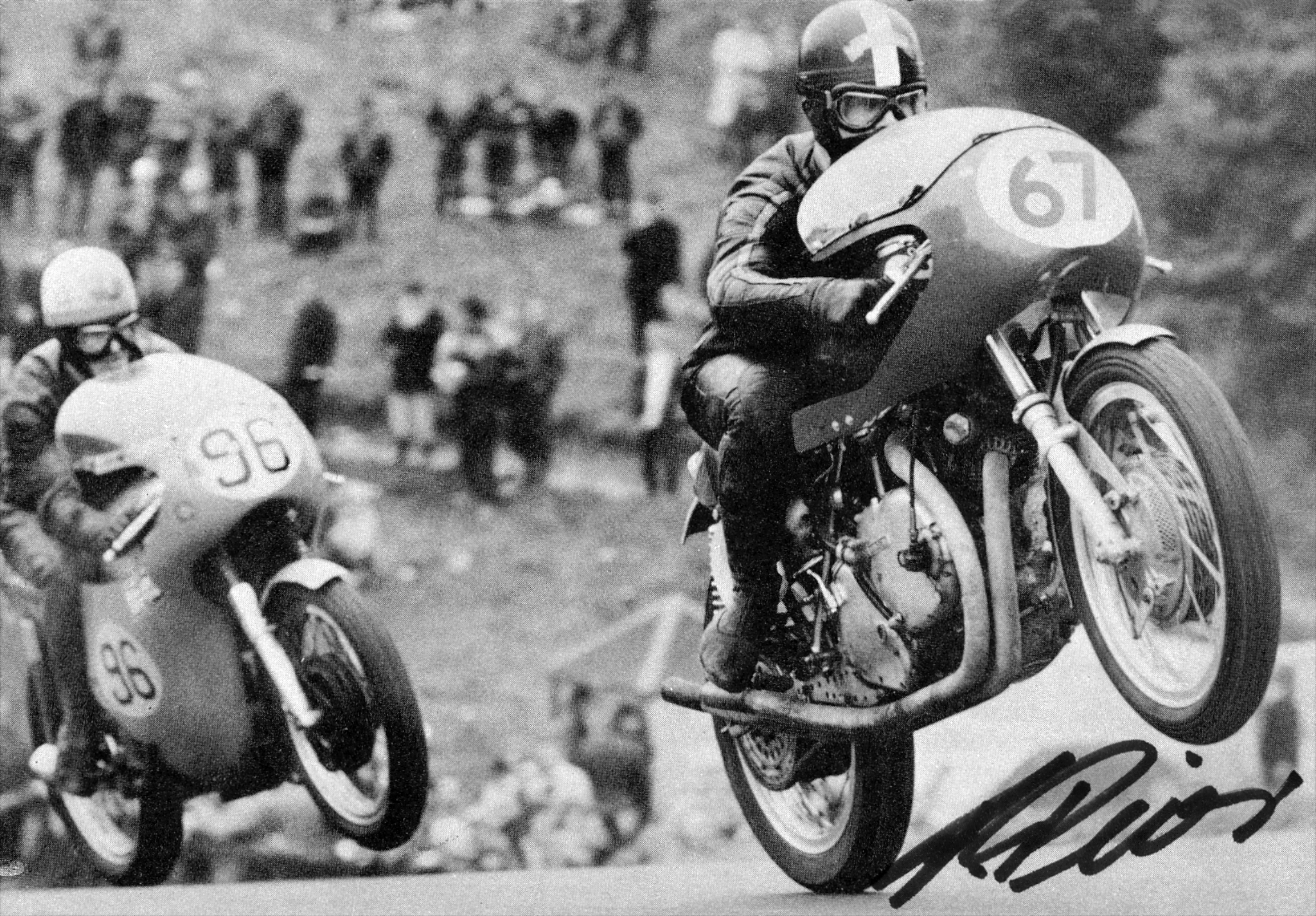 But the Swiss hillclimb championship was much more than what you could think! It was a championship recognized internationally as very challenging in a fantastic mountain setting, and the Monte Generoso climb attracted regularly famous riders like Giacomo Agostini and Mike Hailwood with their works racers. It was indeed challenging for internationals because local riders knew these climbs on their fingertips, and also because the works racers were designed for high speed on tracks with high-revving engines; difficult for these machines to compete with the massive low-end torque that the British twins could deliver out of tight corners in the climbs.