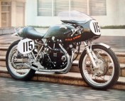 Many Egli enthusiasts also see Fritz Peier’s bike as the most resulted of all Egli-Vincent models with its redesigned tank and seat (British Racing Green of course) and the addition of the half-fairing and crossover straight exhausts. This historic bike still exists – in Germany – and is currently being restored to the original spec by his owner. This bike is the dream for many Vincent enthusiasts that led one of them to build a tribute bike with the support of Patrick Godet. Patrick is so enthusiastic by the result that he is thinking seriously to make a limited edition of five bikes to be available from 2018, just ahead of the 50 anniversary of Fritz Peier’s Swiss hillclimb title (see poll at the end of the post and give your opinion).
