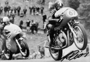 But the Swiss hillclimb championship was much more than what you could think! It was a championship recognized internationally as very challenging in a fantastic mountain setting, and the Monte Generoso climb attracted regularly famous riders like Giacomo Agostini and Mike Hailwood with their works racers. It was indeed challenging for internationals because local riders knew these climbs on their fingertips, and also because the works racers were designed for high speed on tracks with high-revving engines; difficult for these machines to compete with the massive low-end torque that the British twins could deliver out of tight corners in the climbs.