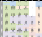 For those interested by the Continental Circus, here is a summary of the brands that won the 1949-1978 Grand Prix. For all details with riders names, visit Wikipedia