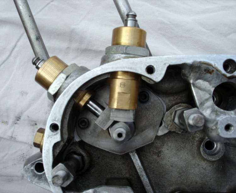 But the most interesting are the modified heads that have rockers over the valves. A solution made possible because in a sidecar configuration room constraints are lesser than in a motorcycle frame. This provides more lift than the stock Vincent. The pushrods are now activated by solid lifters, which means they can use standard hot rod cams.