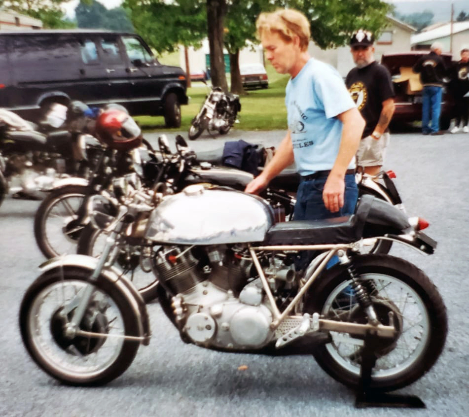 Interesting bike that this Egli-Vincent whose history can be tracked back in 1978 when this frame was first reported to the Vincent HRD Owners Club (VOC). This frame was eventually acquired by Rip Tragle – a famous Vincent mechanic in New York, USA – who completed the bike in 1979. Interesting indeed as almost all of the late VIN issued by Egli’s workshop for Vincent engines were acquired by Roger Slater before 1970 when he switched to the Shadow 70 architecture, made in the UK, and coded with a different VIN sequence.