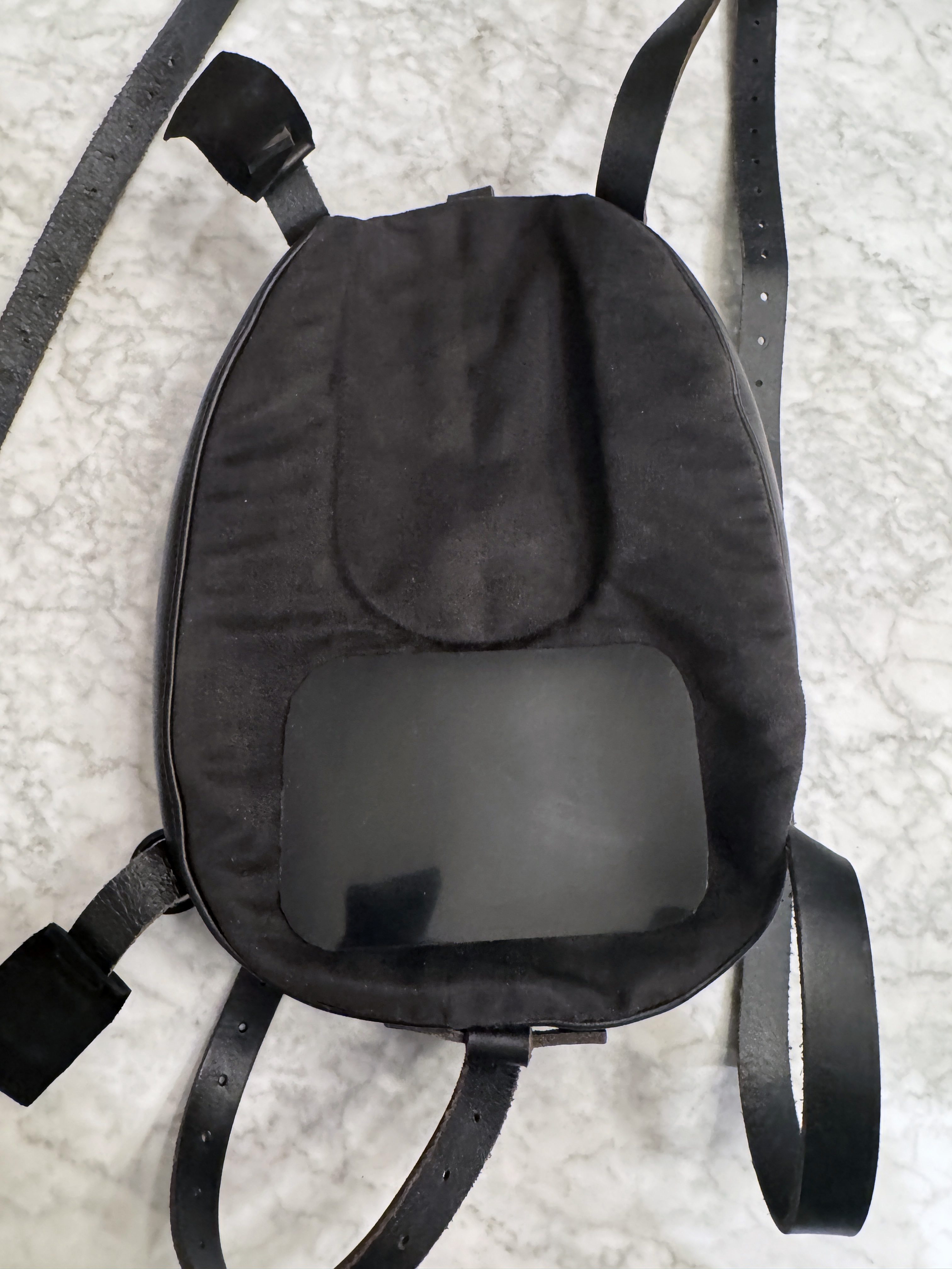 Made of premium leather tank bag for cafe racer. Approx 14in (L) x 10in x 4in (H) expandable to 8in. Anti-skid pad underneath. 2 large leather belts. Leather pads protect the paint from the chrome buckles. (never had any scratch on my tank with it)