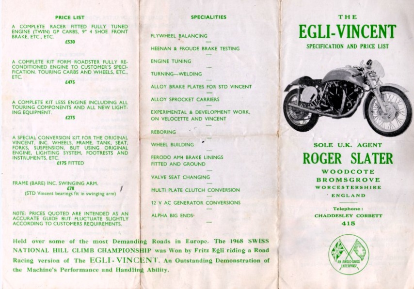 The original Slater price list back in 1968. A complete rolling frame cost GBP 175, today it will likely cost 100 times and you still have to add a complete restored engine.