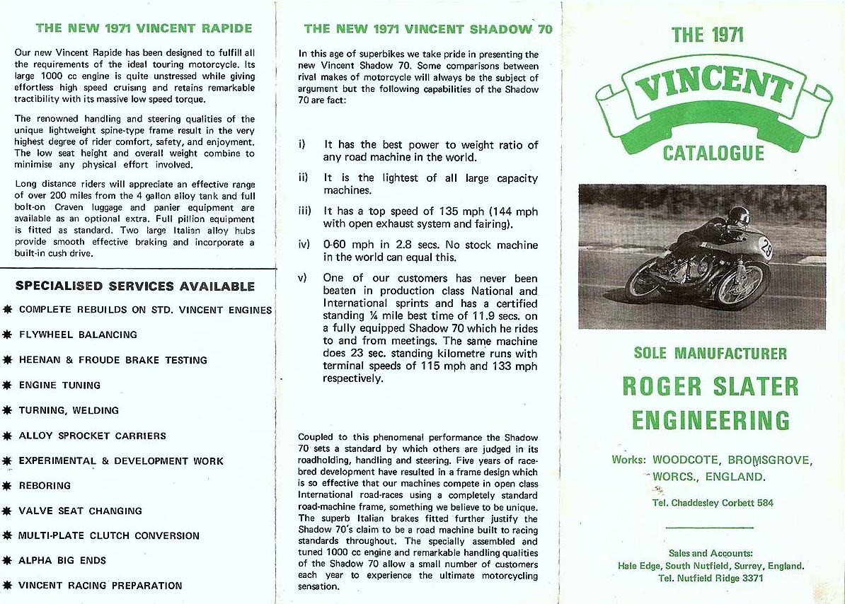 The 1971 Slater flyer. The most important information on this document is that the mention to EGLI is gone. From that step, the chassis were made by Eric Cheney and those cannot be considered as genuine Egli.