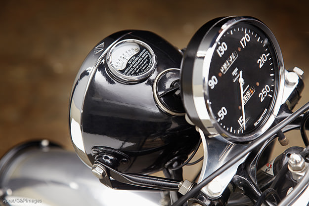 In gleaming chrome and polished alloy with the black paintwork the bike is a contemporary work of art and a living compliment to the mighty Vincent engine. Watching it and then riding it proved the vast difference between it and the Ducati. The throbbing lusty power that will last forever and a much more useable power band, although this is the wrong term to use for both machines; they are all torque.