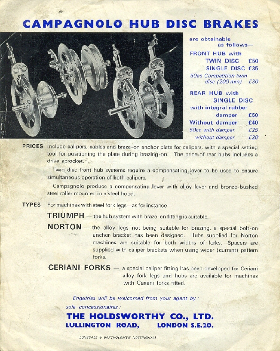 The original Egli-Vincent front brakes were supplied by Campagnolo.