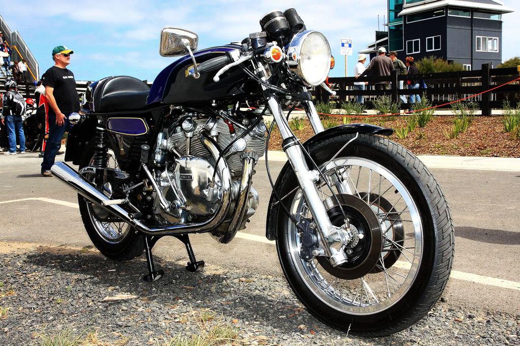 The blend of the Vincent v-twin engine with a Ducati “bevel” frame.