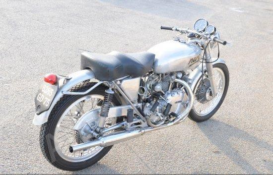 NERO A very rare bike that could be mistaken for an Egli but it is not! This bike was rebuilt in 1957 for a Frenchman named Marc Bellon after a road crash and he own the bike until 2009 before selling it in the UK. George Brown himself built the RFM (rear frame) and installed a conventional front fork, so the bike kept its VIN# and registration. The bike name is NERO as Brown's Vincent racers. Brown built 3 similar bikes.